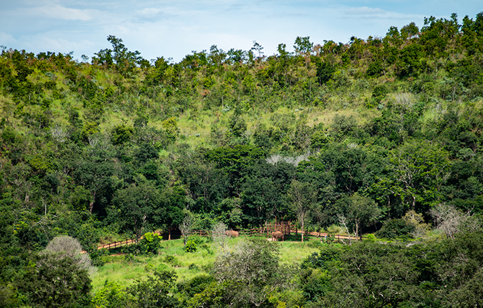 Amplos espaços abertos que permitem aos elefantes se perderem dentro de seu próprio mundo de exploração intuitiva.
