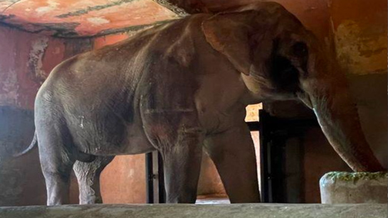 Sandro está confinado em um espaço abaixo das normas, com riscos graves à saúde e sem contato com outros elefantes desde 2020.