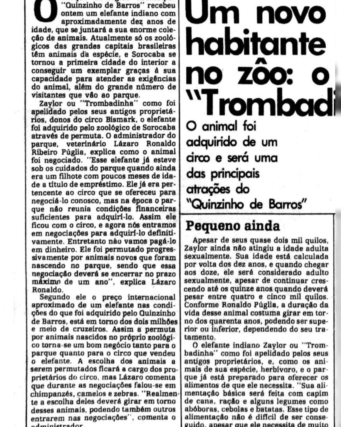 Conforme reportagem do Jornal Cruzeiro do Sul, de 1982, Sandro foi ADQUIRIDO de um circo pelo Zoo. Em outras palavras, Sandro foi negociado: comprado ou trocado por outros animais. CONFIRA
