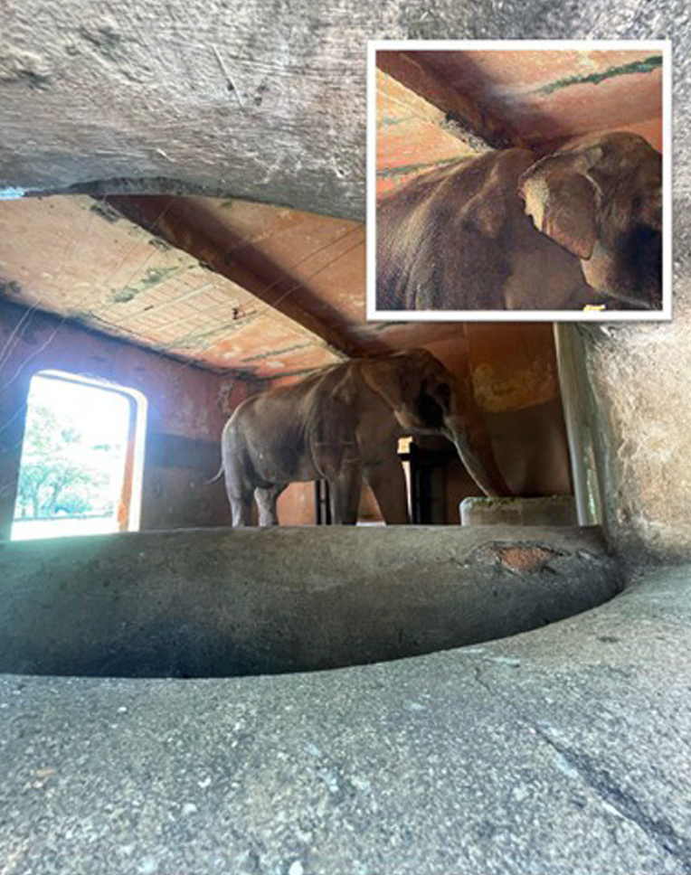 O atual recinto do Sandro é incompatível para elefantes de qualquer idade e peso, principalmente para elefantes mais velhos como o Sandro.